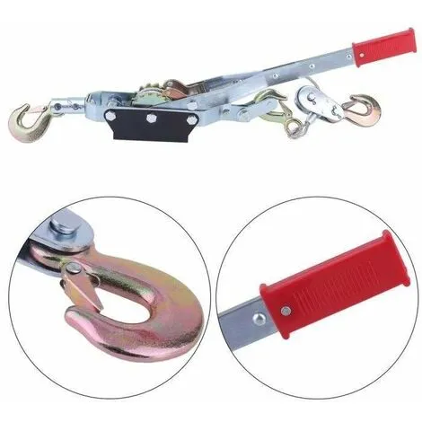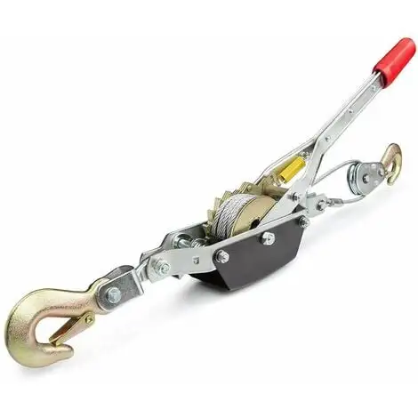 Palan manuel à double cliquet, 2 crochets en acier, cable en acier et linguets de sécurité pour une prise sûre.